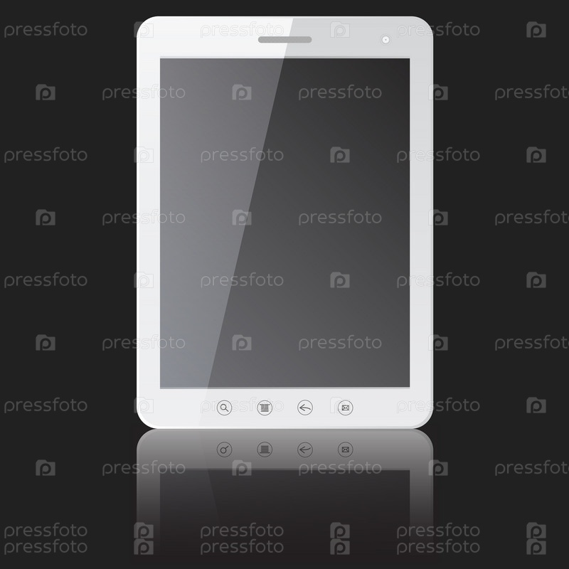 Белый планшетный компьютер на темном фоне