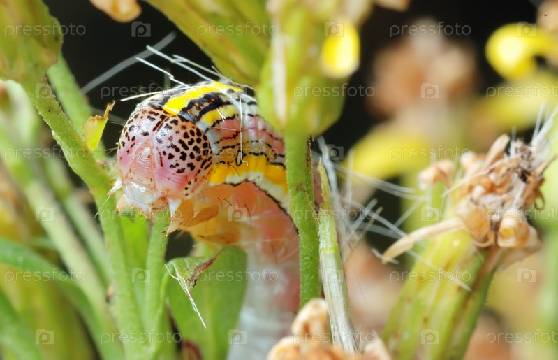 Полосатая гусеница крупным планом