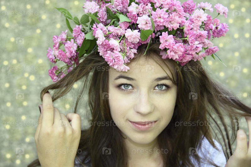 Девушка в венке из розовых роз