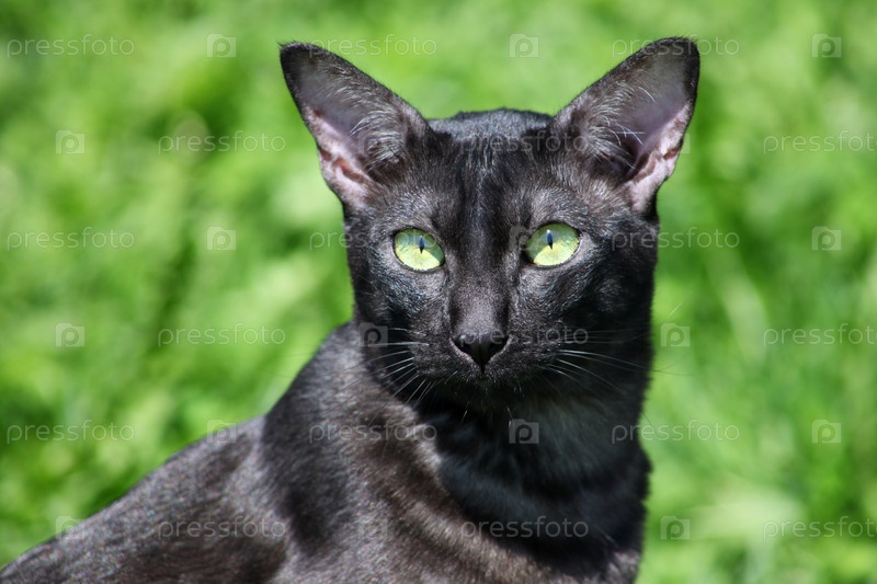Восточная черная кошка на траве