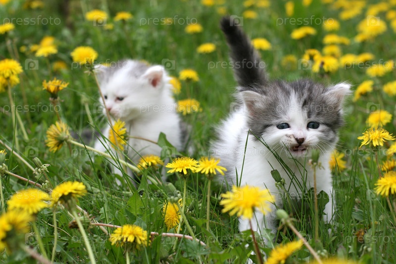 Белые котята на одуванчиковом поле