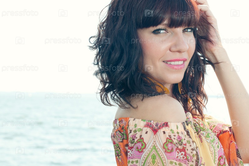 Очаровательная молодая женщина на фоне моря