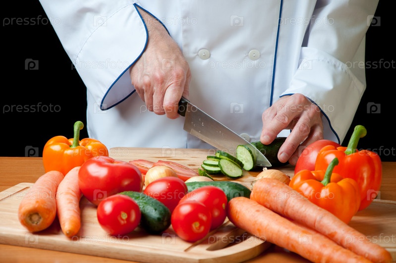 Шеф-повар нарезает свежие овощи