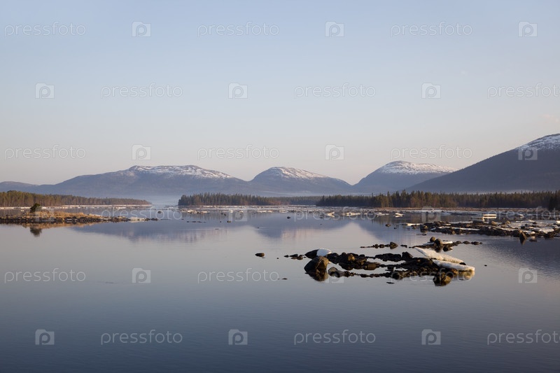 Пейзаж с видом на острова и горы. Кандалакша
