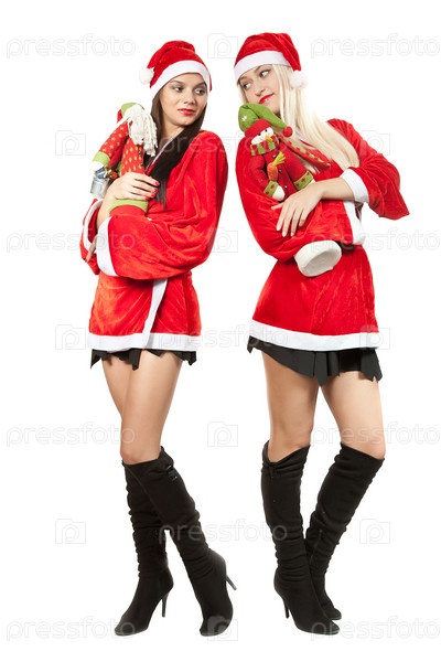 Две молодые женщины в костюме Санты