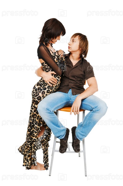 Молодая пара на белом фоне