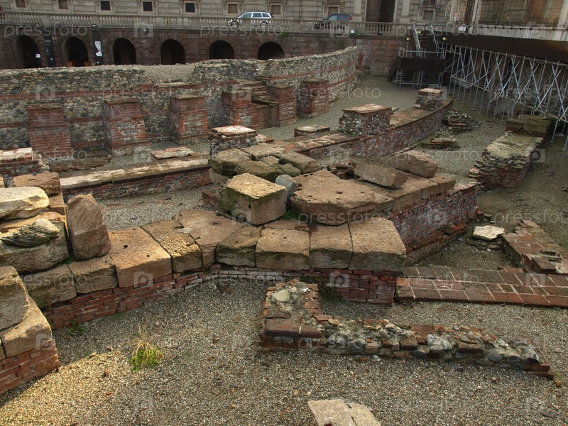 Руины римского театра в Турине, Италия