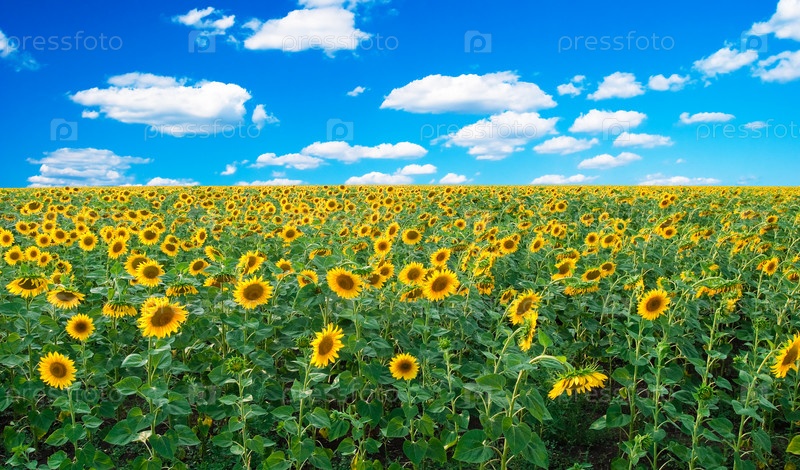 Поле подсолнухов и голубое небо
