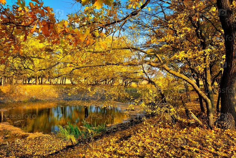 Небольшое озеро в осеннем лесу