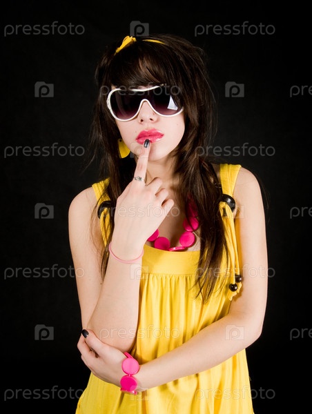 Молодая девушка в желтом платье на черном фоне