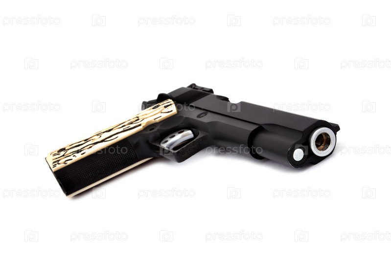 Черный пистолет на белом фоне