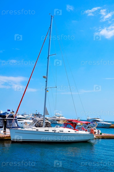 Парусная яхта привязана к пирсу