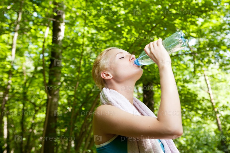 Красивая женщина с бутылкой воды после бега
