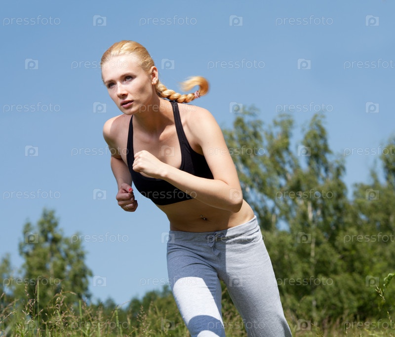 Красивая молодая женщина на пробежке на природе