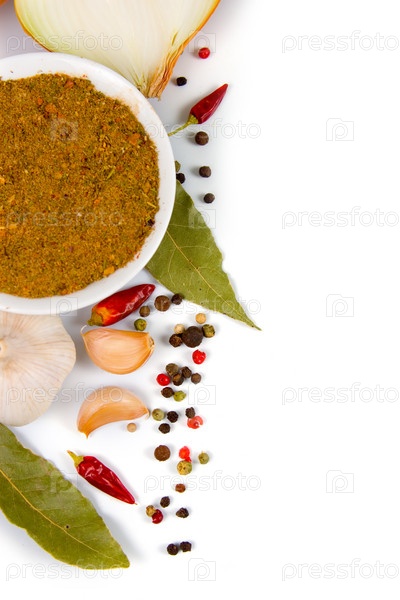 Различные специи на белом фоне