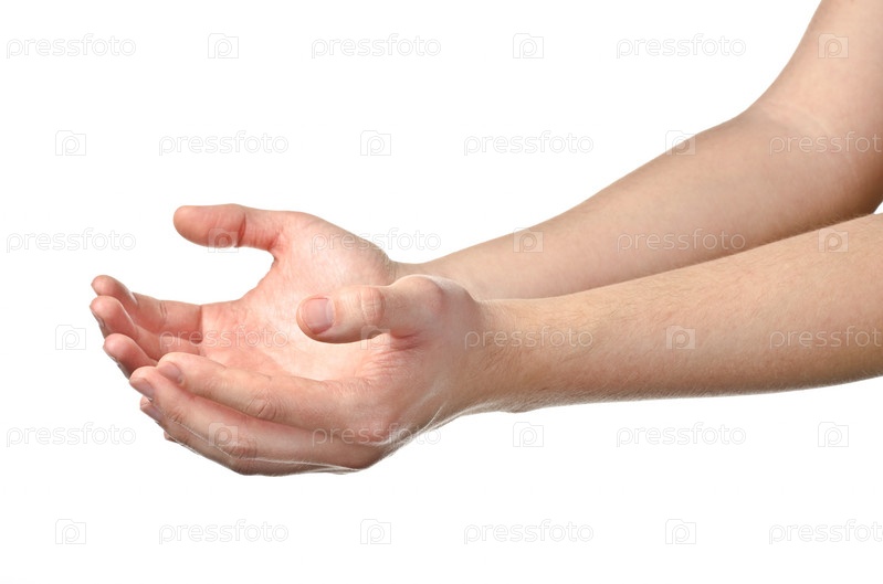 Пустые мужские ладони, изолированные на белом фоне