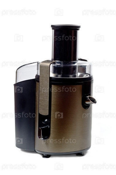 Электрическая пустая стальная соковыжималка, изолированная на белом фоне