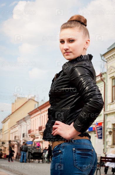 Красивая девушка в исторической части современного города Черновцы