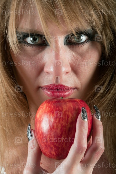 Женское лицо и яблоко