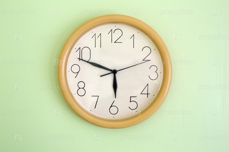 Часы висит на стене и показывают текущее время