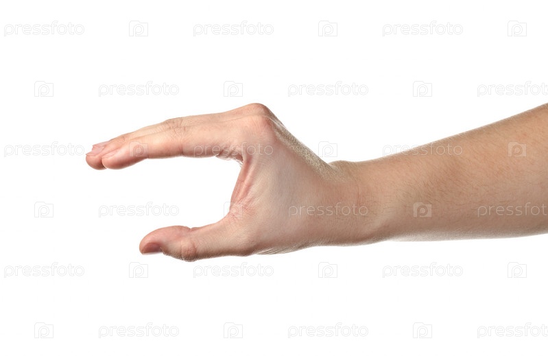 Мужская рука держит что-то невидимое, изолированная на белом фоне