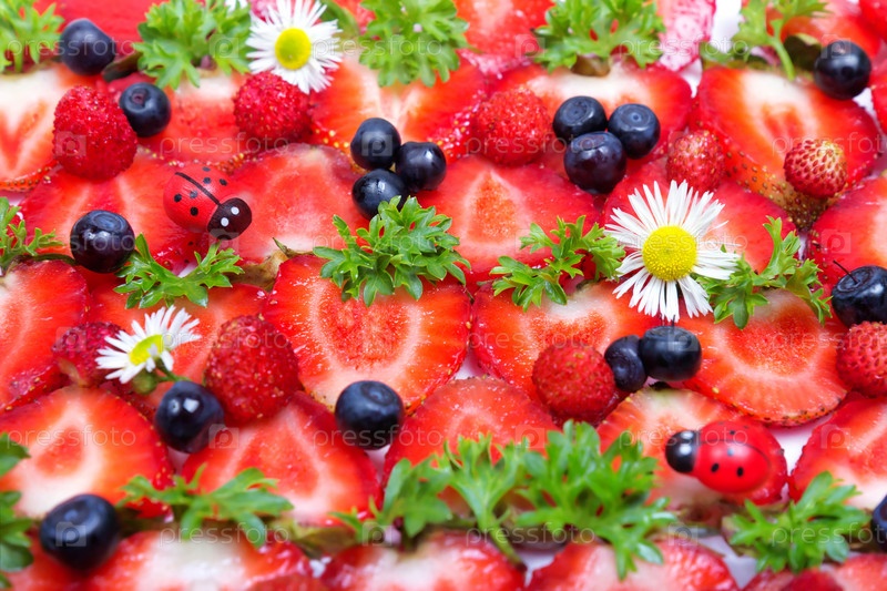 Свежая клубника, черника и ромашки, фон