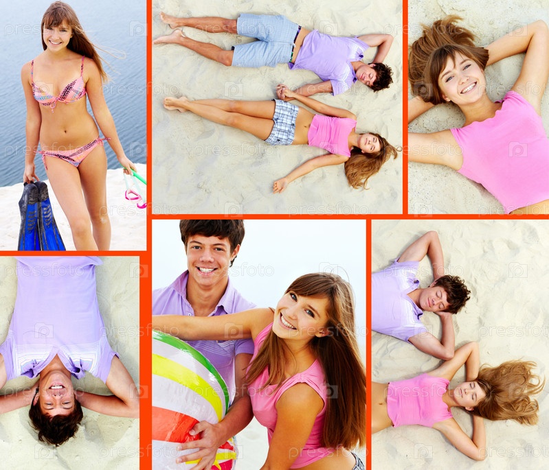 Пара на пляже, коллаж
