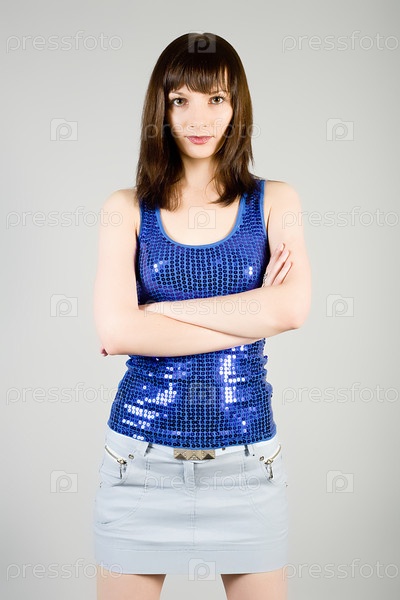 Красивая девушка в элегантном платье на сером фоне