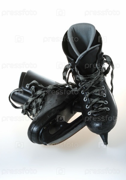 Старые хоккейные коньки на белом фоне