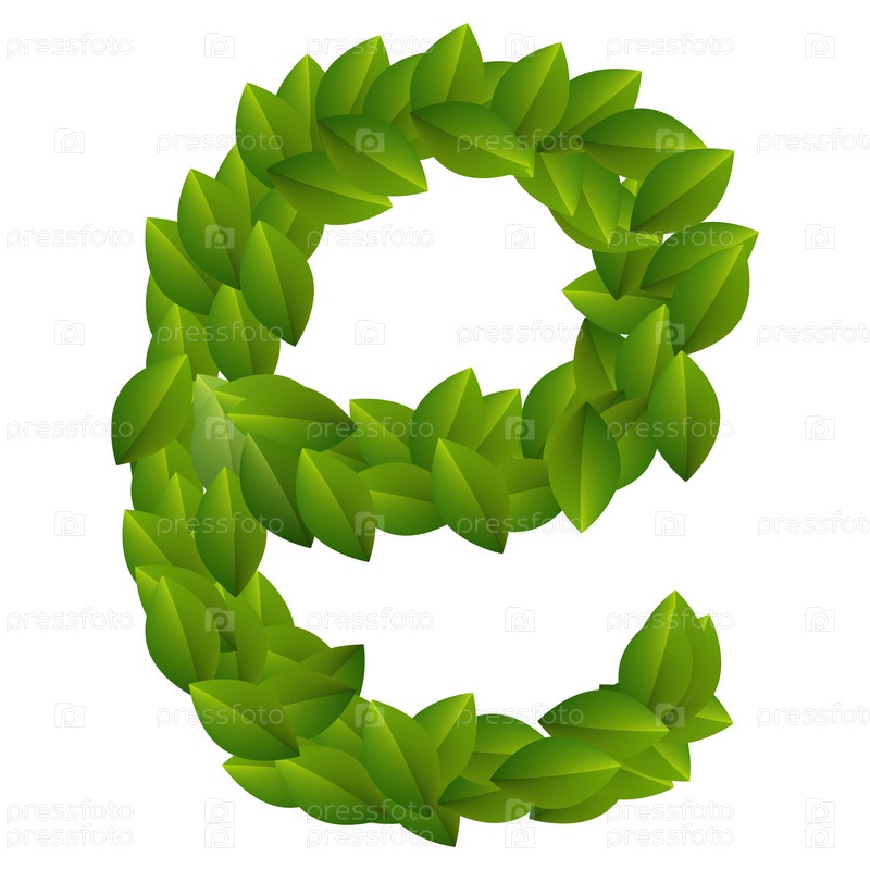 Буква E из зеленых листьев