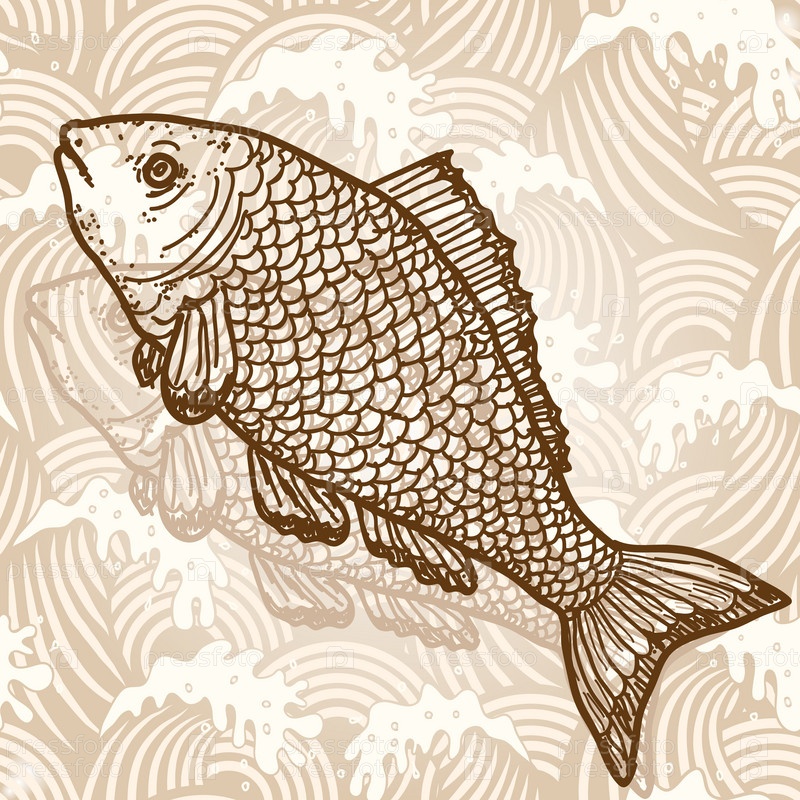 Морская рыба. Настоящая ручная иллюстрация в винтажном стиле
