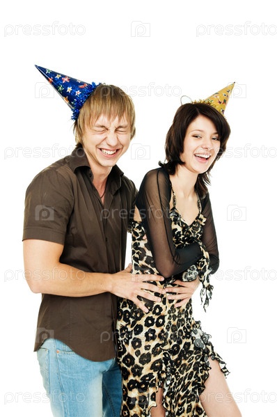 Веселая пара в праздничных колпачках