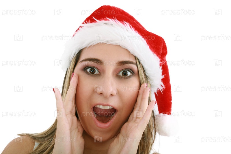 Удивленная женщина в рождественском колпаке