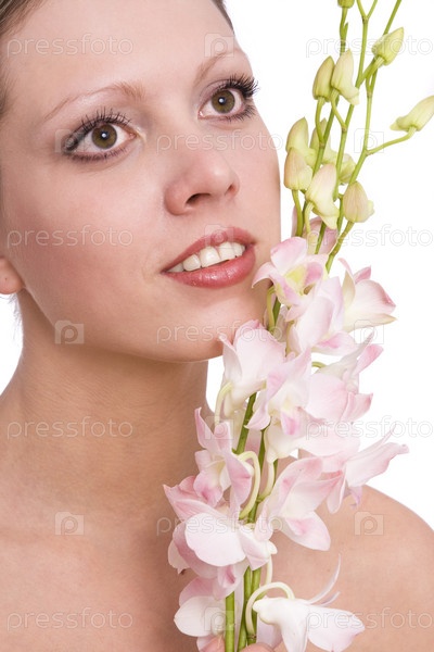 Портрет красивой девушки с орхидеями