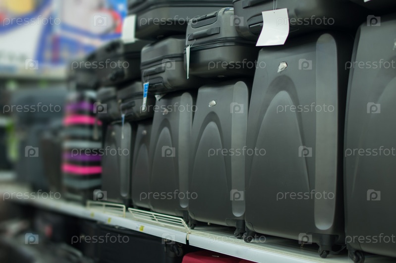 Полки с чемоданами в супермаркете