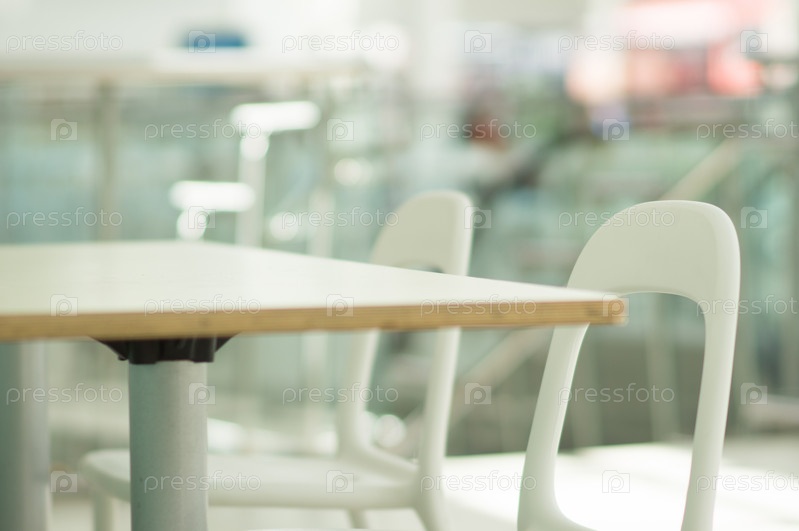 Пустые столы врподуктовой зоне в торговом центре