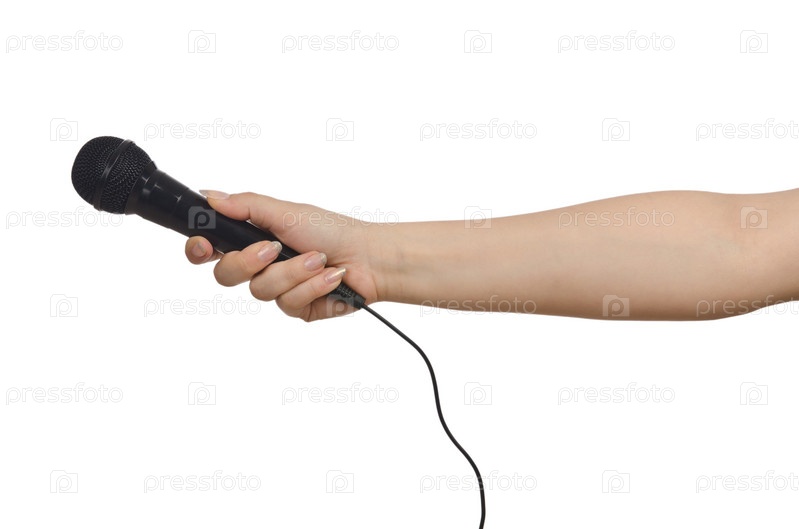 Рука с микрофоном на белом фоне