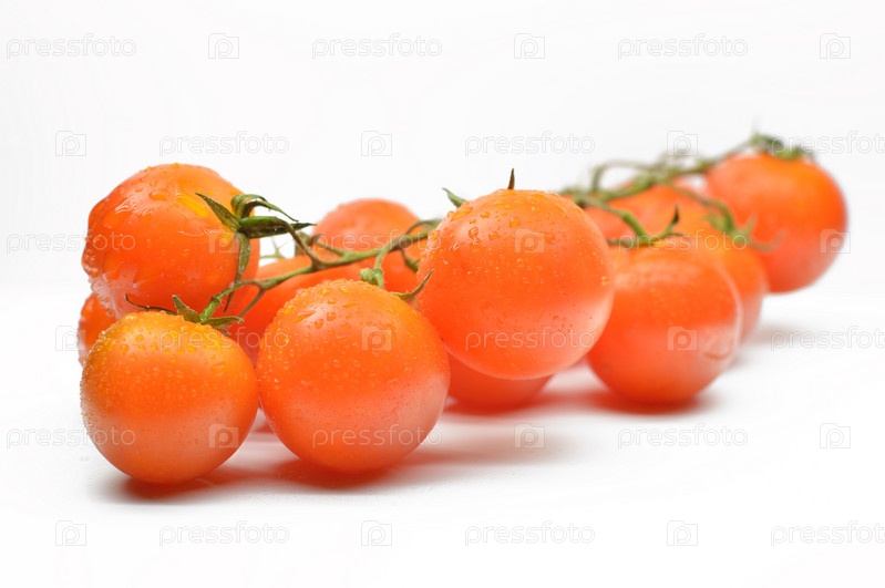 Веточка с помидорами черри крупным планом на белом фоне