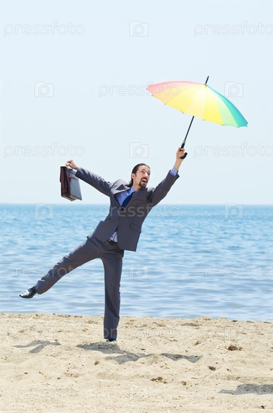 Человек с зонтиком на пляже