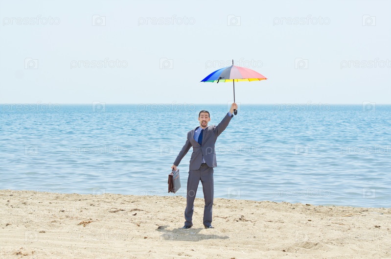 Человек с зонтиком на пляже