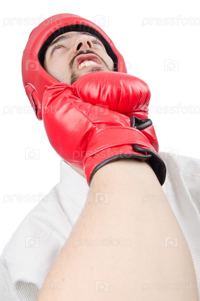 Боец каратэ, изолированный на белом фоне
