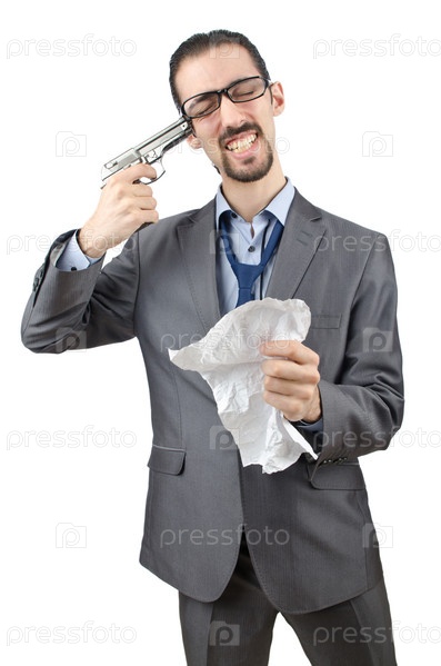 Бизнесмен с пистолетом, изолированный на белом фоне