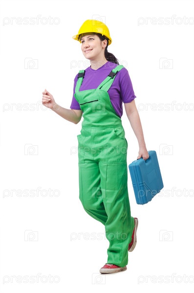 Работница, изолированная на белом фоне