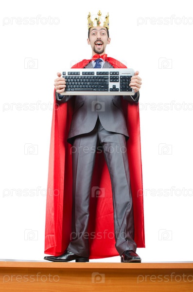 Человек в красном плаще на белом фоне