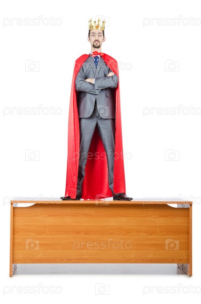 Человек в красном плаще на белом фоне