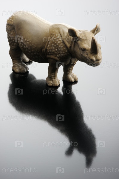 Пластиковая фигурка носорога на глянцевой поверхности