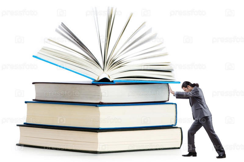 Бизнесмен с книгами на белом фоне