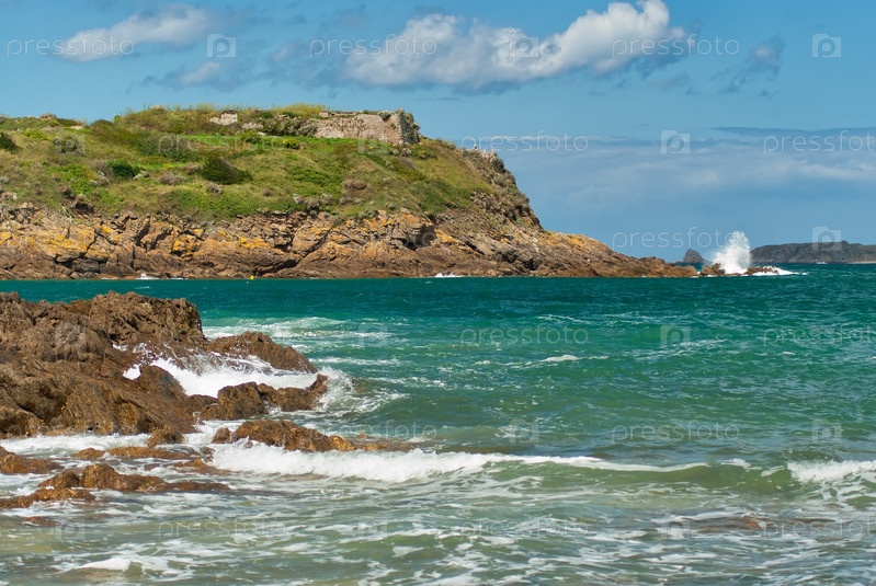 Прибой на скалах во время прилива недалеко от Сен-Мало