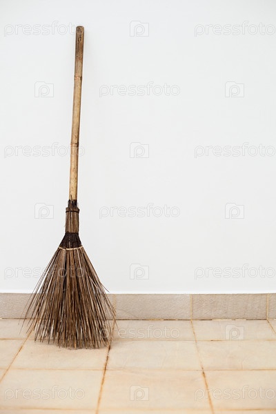 Метла у белой стены