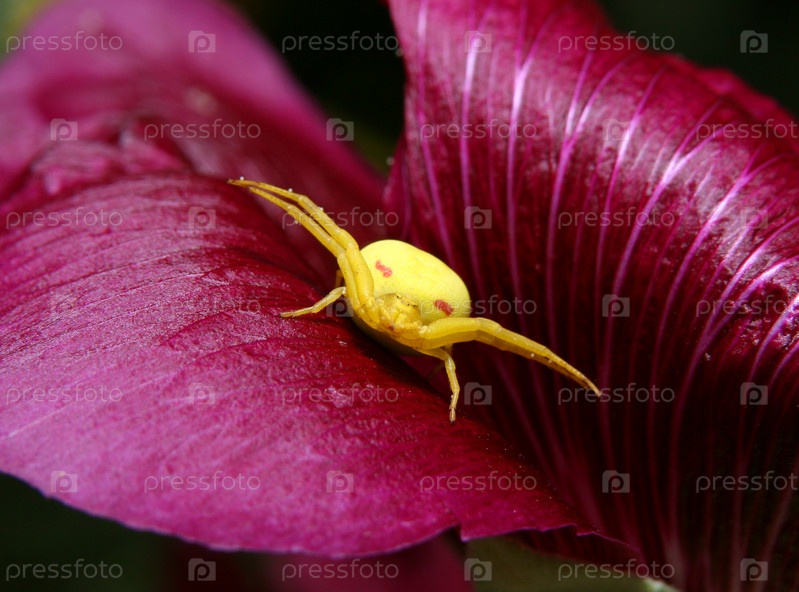 Желтый паук на цветке мальвы